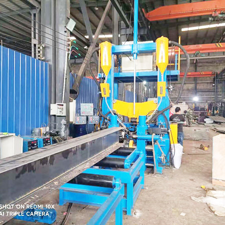 皇泰鋼結(jié)構(gòu)組焊矯一體機(jī)是專門針對H型鋼研發(fā)的,該設(shè)備利用專有研發(fā)技術(shù),將原本傳統(tǒng)流水線三臺機(jī)器才能完成的工作,合到一起在一臺設(shè)備上完成,實現(xiàn)無焊點,無引弧板技術(shù),顯著提高了生產(chǎn)效率及產(chǎn)品合格率,降低了生產(chǎn)成本,節(jié)省了場地空間。H型鋼組矯焊一體機(jī)生產(chǎn)流水線優(yōu)勢:生產(chǎn)效率提高鋼結(jié)構(gòu)組立,焊接,矯正基本同時進(jìn)行,生產(chǎn)時間大大減少,節(jié)省廠房空間。組焊矯一體機(jī)設(shè)備相比較傳統(tǒng)鋼結(jié)構(gòu)生產(chǎn)線節(jié)省一半占地面積,提高廠房利用率,節(jié)省人工。